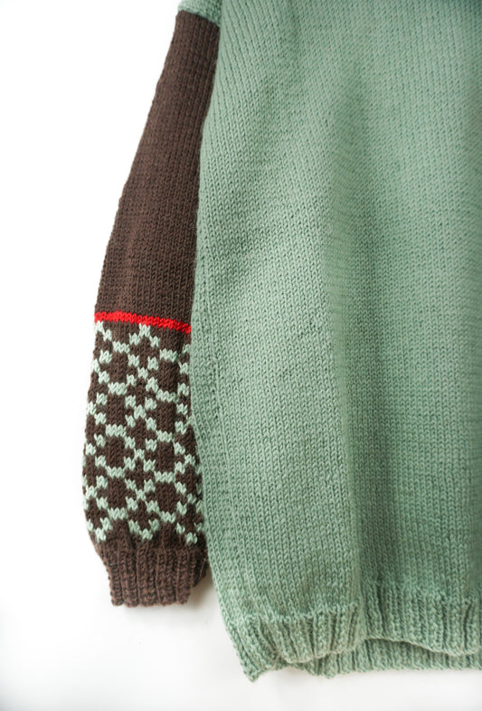 Pattern Sleeve Mint Jumper