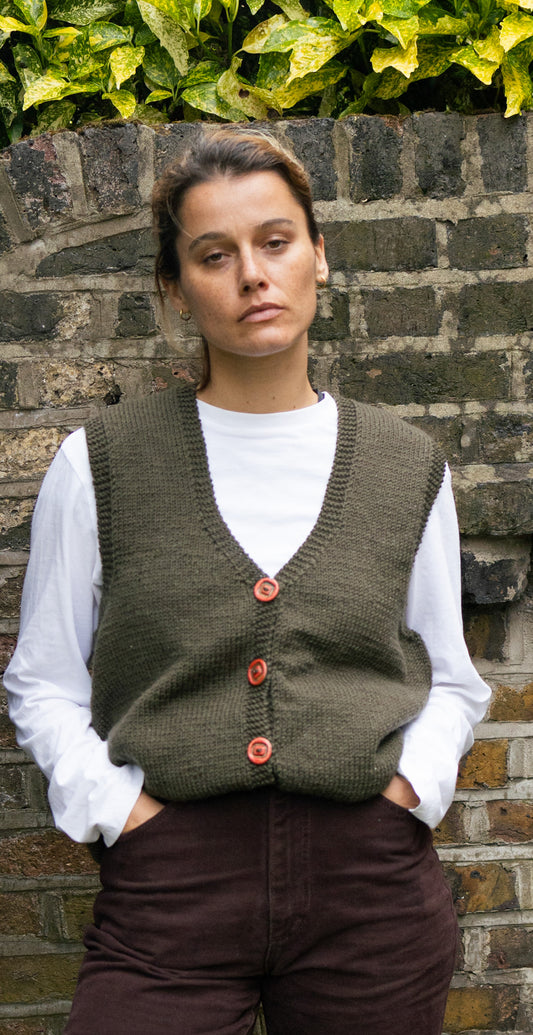 Khaki Red Button Cardigan