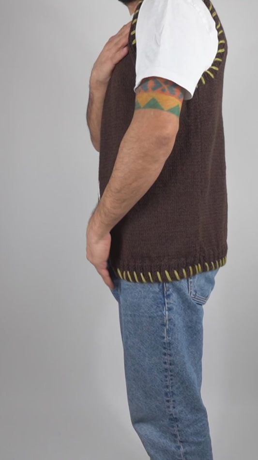 Brown Stitched Sleeveless Cardigan